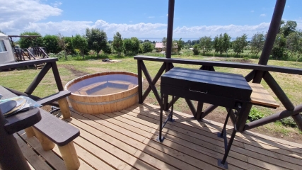 Tina de agua caliente privada en tu terraza al aire libre. (Valor adicional)